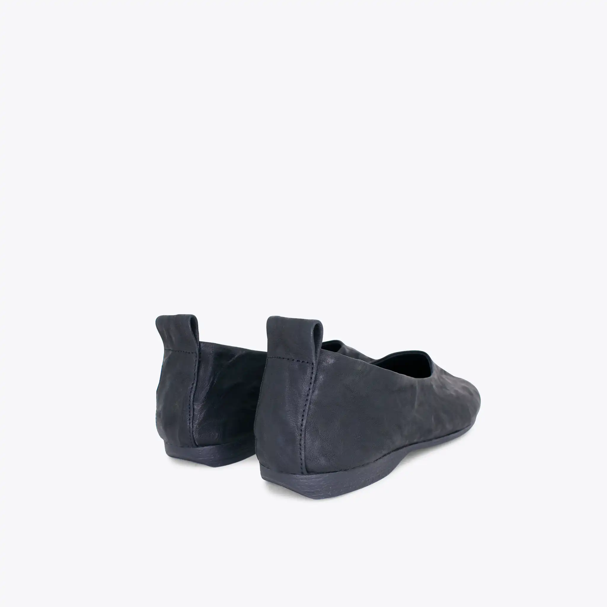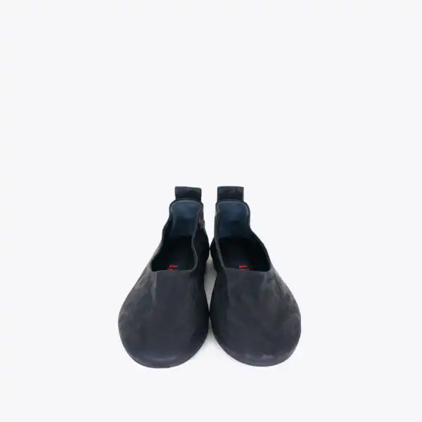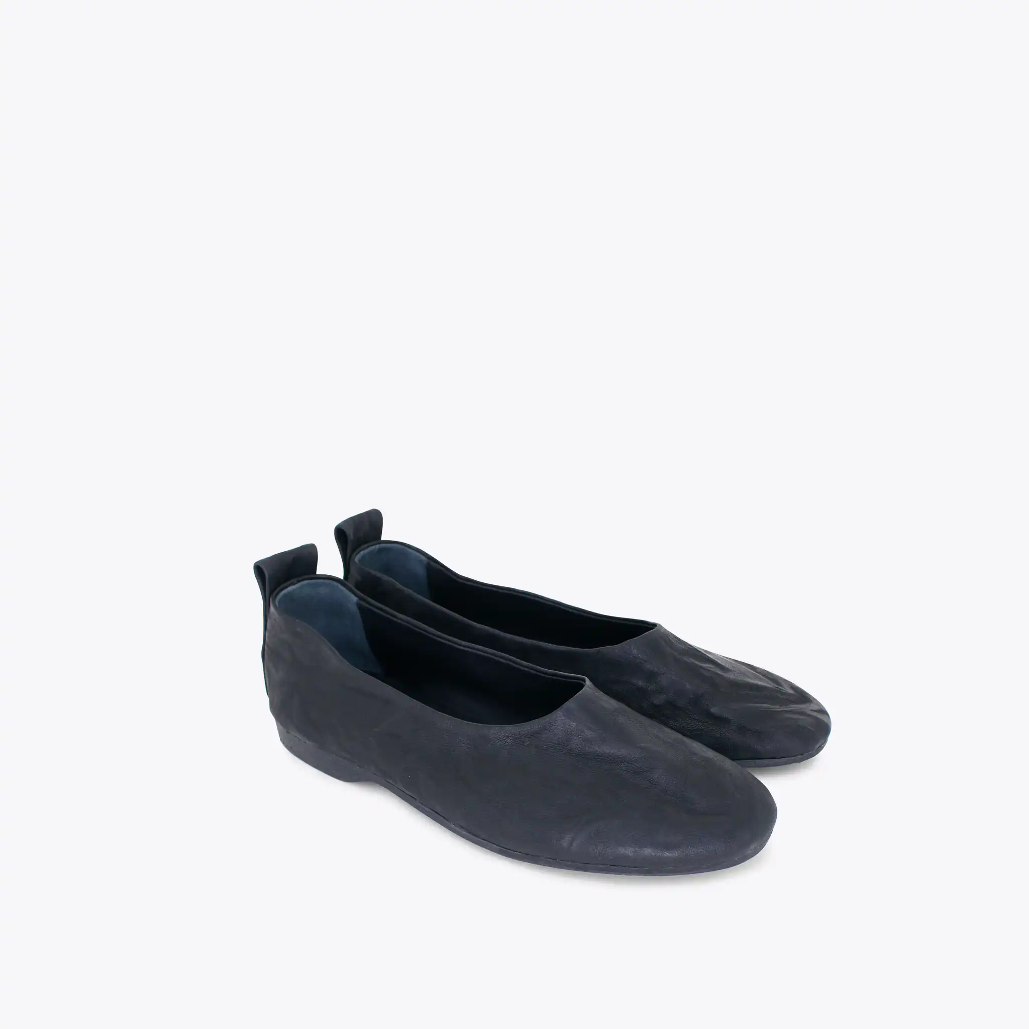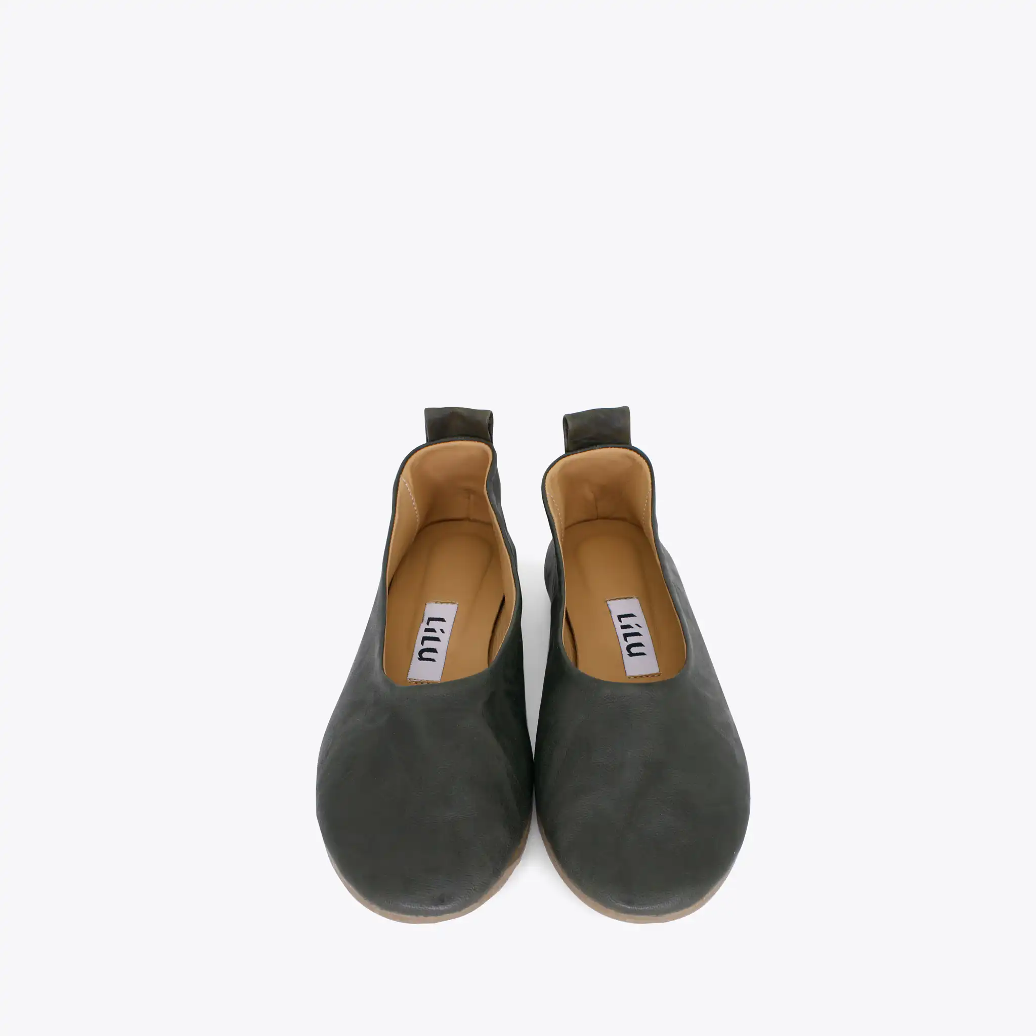 Ravne cipele/baletanke za sezonu proleće/leto, na djonu od sirove gume i zbog toga je moguće nositi ih kada su lošije vremenske prilike. U pitanju je ručna izrada obuće. Izradjujemo ih od crne, maslinaste i svetlo sive gužvane kože. I lice i postava su od govedje kože. Za naručivanje u posebnim bojama kontaktirajte nas putem e-mail-a.