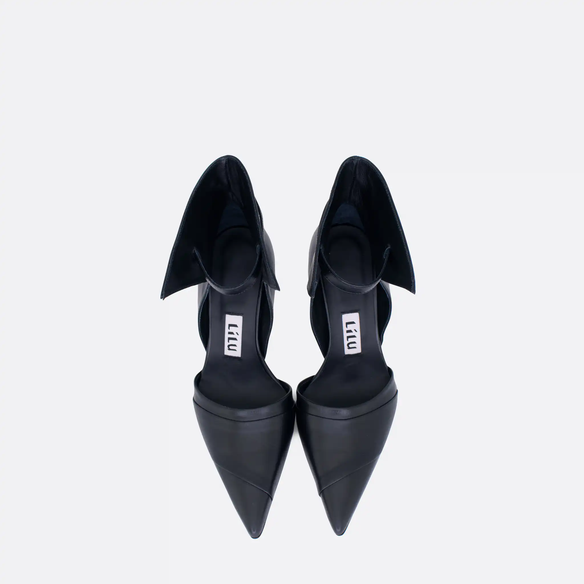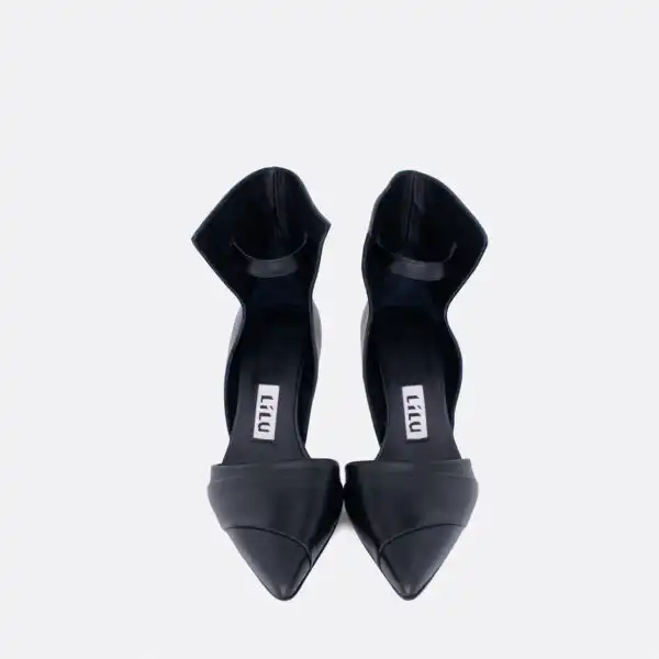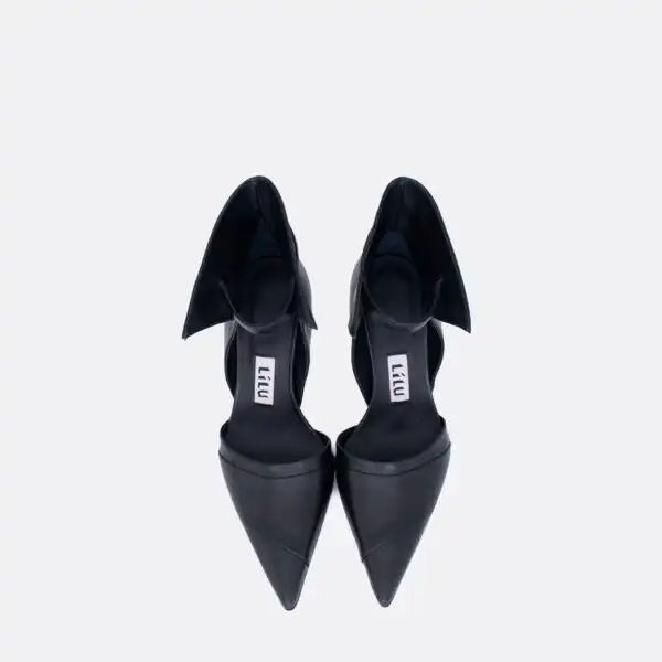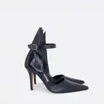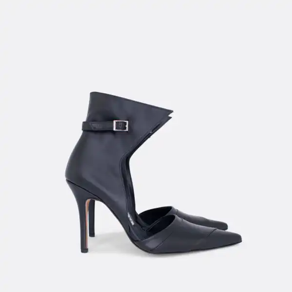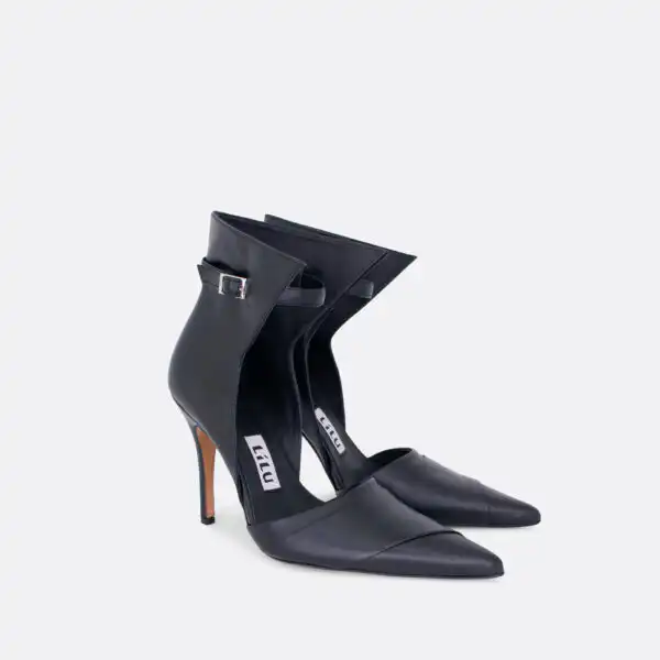 Cipele sa visokom stiklom, neobičnog dizajna, za proleće, leto i jesen, na kožnom djonu i zbog toga nije preporučeno nositi ih kada su lošije vremenske prilike. Visina štikle je 10cm. U pitanju je ručna izrada obuće. Izradjujemo ih od crne kože, a za naručivanje u posebnim bojama kontaktirajte nas.