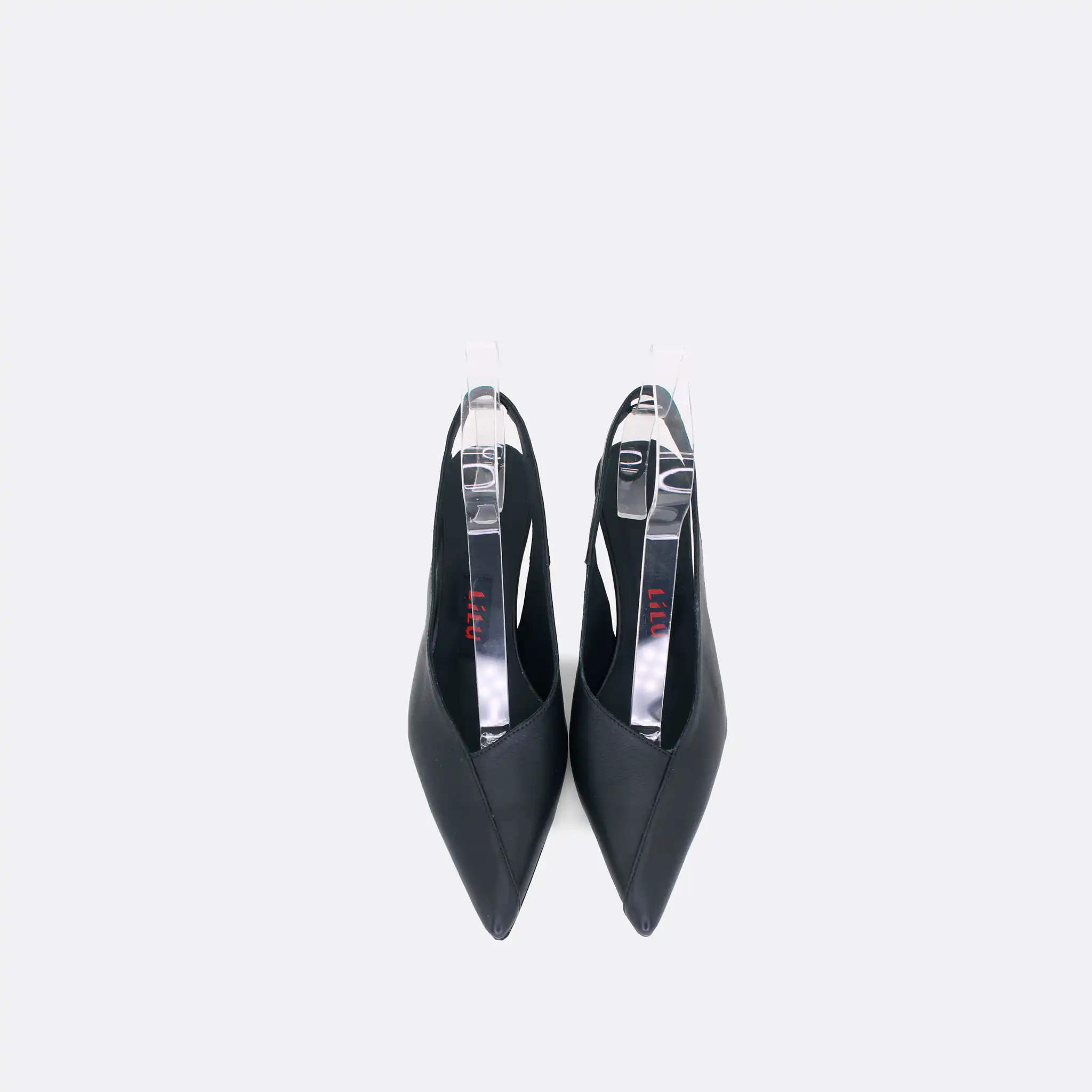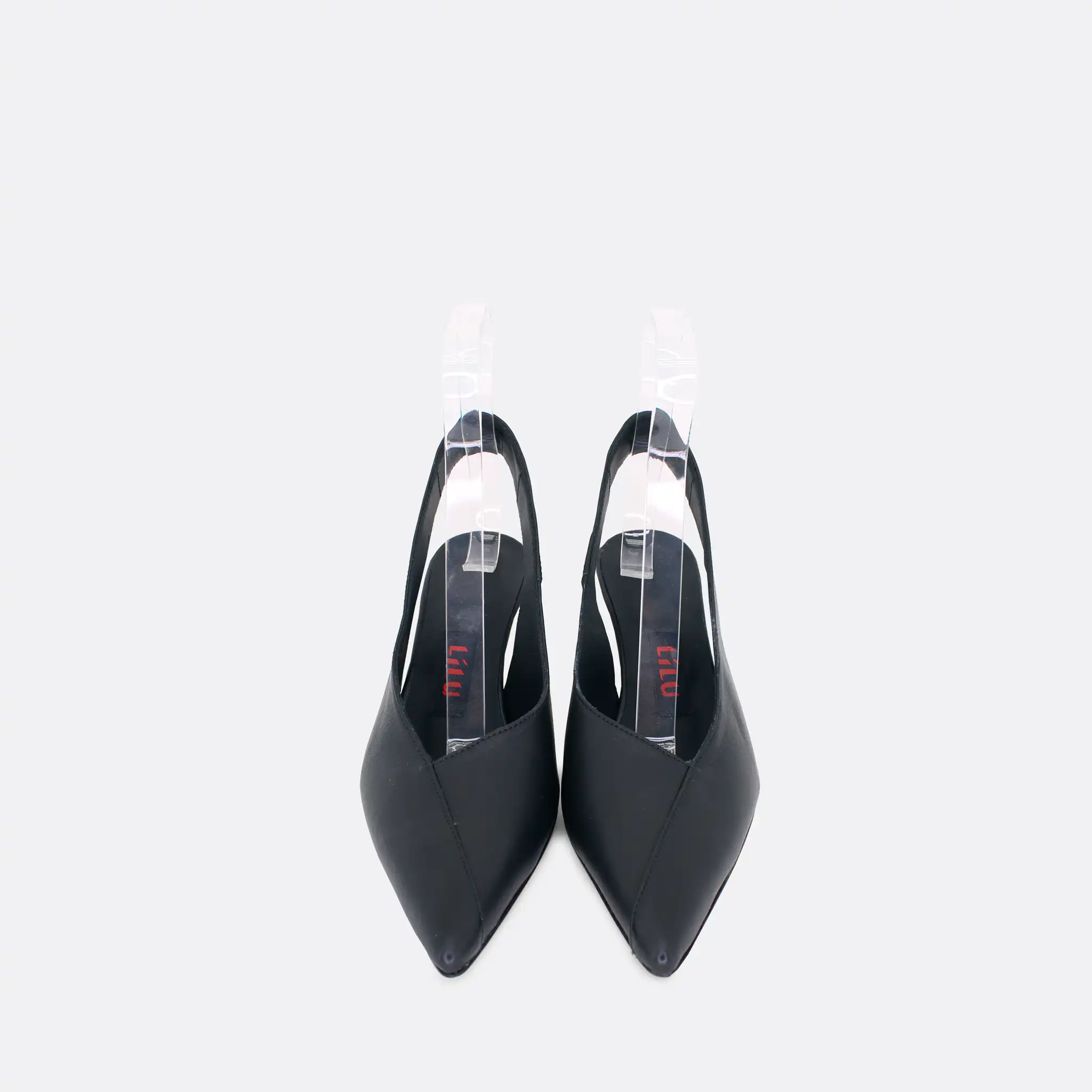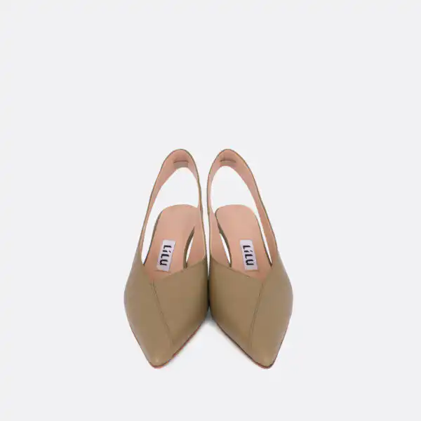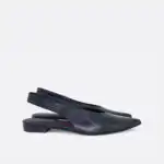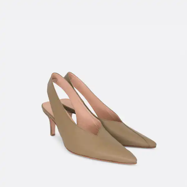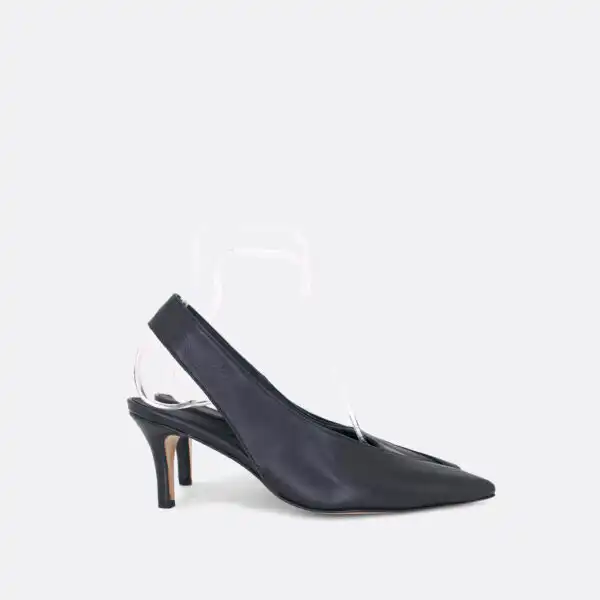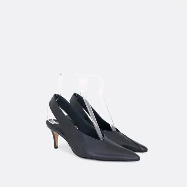 Špicaste elegantne i vrlo udobne polu-cipele otvorene na peti, sa štiklom od 7 cm, za sve sezone, na djonuod kože i zbog toga nije poželjno nositi ih kada su lošije vremenske prilike. U pitanju je ručna izrada obuće u malim, limitiranim serijama. Izradjujemo ih od crne, bele, maslinaste, svetlo plave i losos glatke govedje kože. Postava je kožna. Štikla je presvučena u kožu od koje se radi i model. Za naručivanje u posebnim bojama kontaktirajte nas putem e-mail-a.