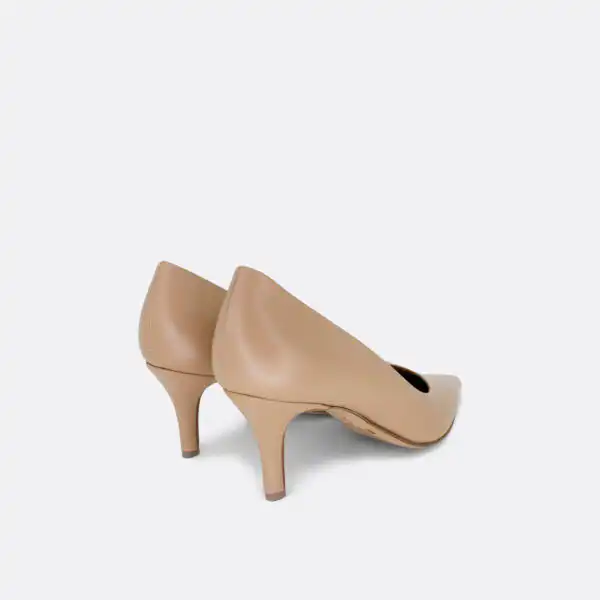Špicaste elegantne i vrlo udobne cipele sa štiklom od 7 cm, za sve sezone, na djonu od kože i zbog toga nije poželjno nositi ih kada su lošije vremenske prilike. U pitanju je ručna izrada obuće u malim, limitiranim serijama. Izradjujemo ih od crne i krem glatke kože, ciklama velura, svetlo roze, narandžaste i svetlo sive kroko kože. Postava je kožna. Štikla je presvučena u kožu od koje se radi i model. Za naručivanje u posebnim bojama kontaktirajte nas putem e-mail-a.