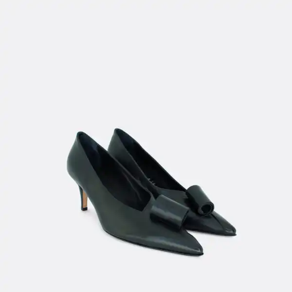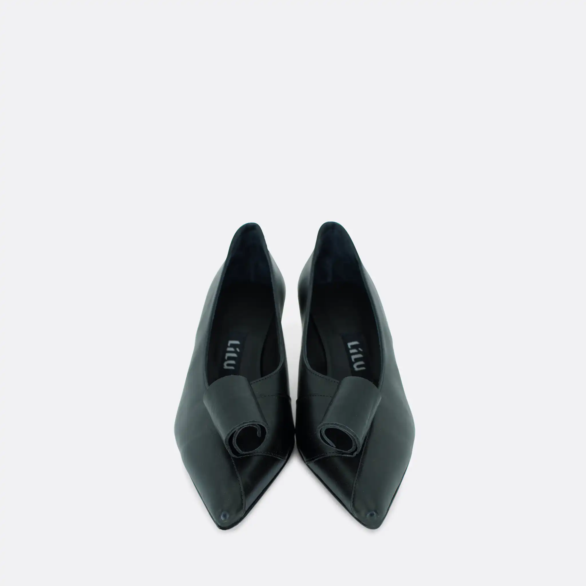 Špicaste elegantne i vrlo udobne cipele sa štiklom od 7 cm i sa unikatnim detaljem. Pogodne za više sezona, na djonu od kože i zbog toga nije poželjno nositi ih kada su lošije vremenske prilike. U pitanju je ručna izrada obuće u malim, limitiranim serijama. Izradjujemo ih od koralne, crne i tamno bordo govedje kože. Postava je kožna. Štikla je presvučena u kožu. Za naručivanje u posebnim bojama kontaktirajte nas putem e-mail-a.