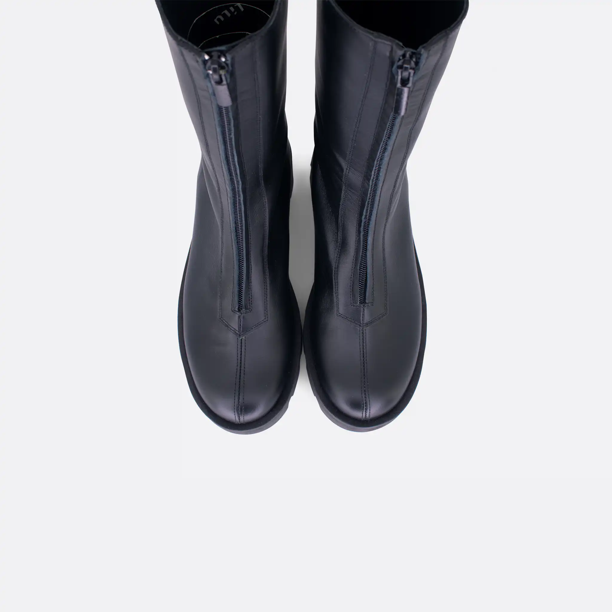 Ravne gležnjače sa rajsfešlusom za jesen i zimu, na gumenom djonu. Moguće je nositi ih i kada su lošije vremenske prilike. U pitanju je ručna izrada obuće. Izradjujemo ih u crnoj boji od govedje kože a za naručivanje u posebnim bojama kontaktirajte nas putem e-mail-a.