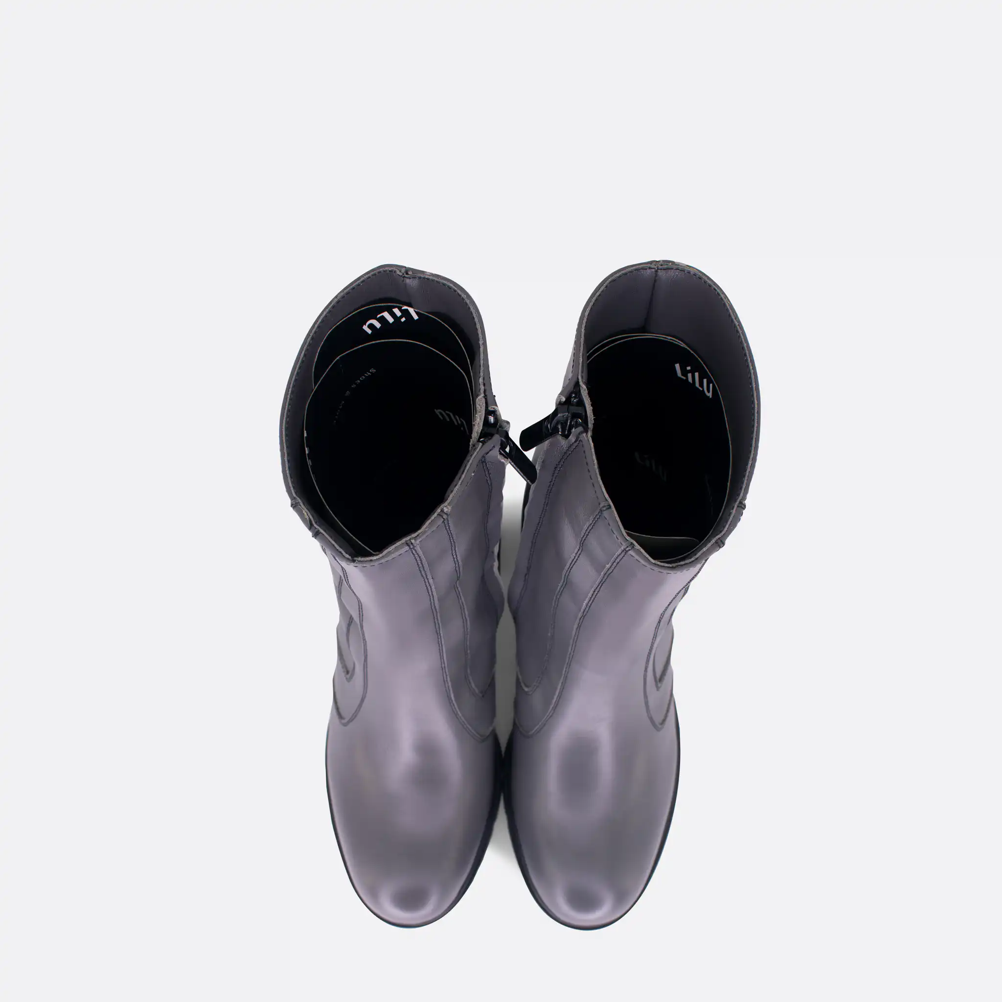 Kratke čizmice za jesen i zimu sa rajsfešlusom, sa gumenim djonom. U redu je nositi ih kada su lošije vremenske prilike. Štikla je 6cm visine. U pitanju je ručna izrada obuće. Izradjujemo ih u crnoj, ljubičastoj i sivoj govedjoj koži a u kombinaciji sa djonovima u crnoj i konjak boji. Postava je kožna. Kalup je veći i treba razmotriti naručivanje za jedan broj manje. Za narucivanje u posebnim bojama kontaktirajte nas putem e-mail-a.