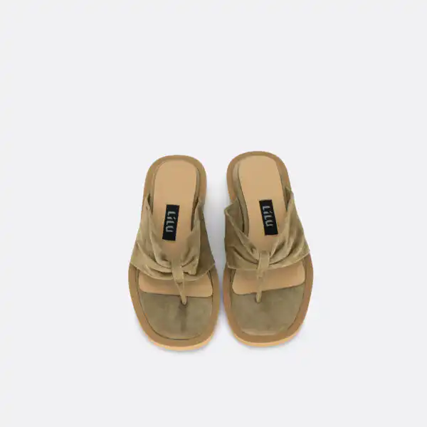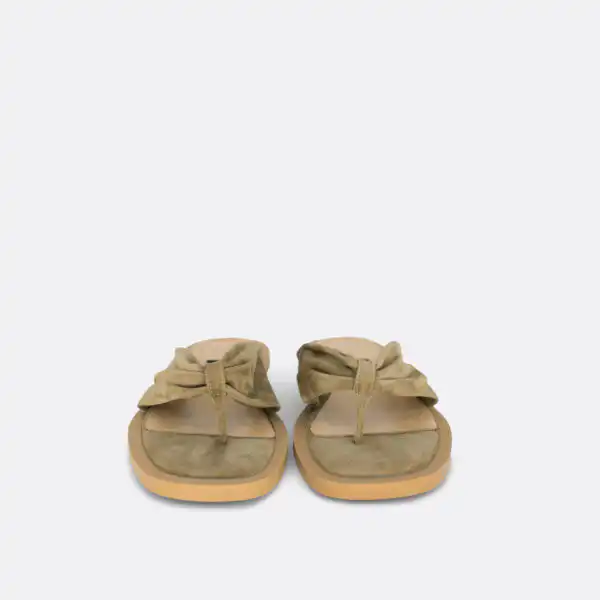 Ravne papuče japanke za leto na djonu od gume i zbog toga je u redu nositi ih i kada su lošije vremenske prilike. Izuzetno mekane i udobne. Postava i lice su od kože. U pitanju je ručna izrada obuće. Izradjujemo ih u crnoj koži i krem kožnom veluru, a za naručivanje u posebnim bojama kontaktirajte nas putem e-mail-a.