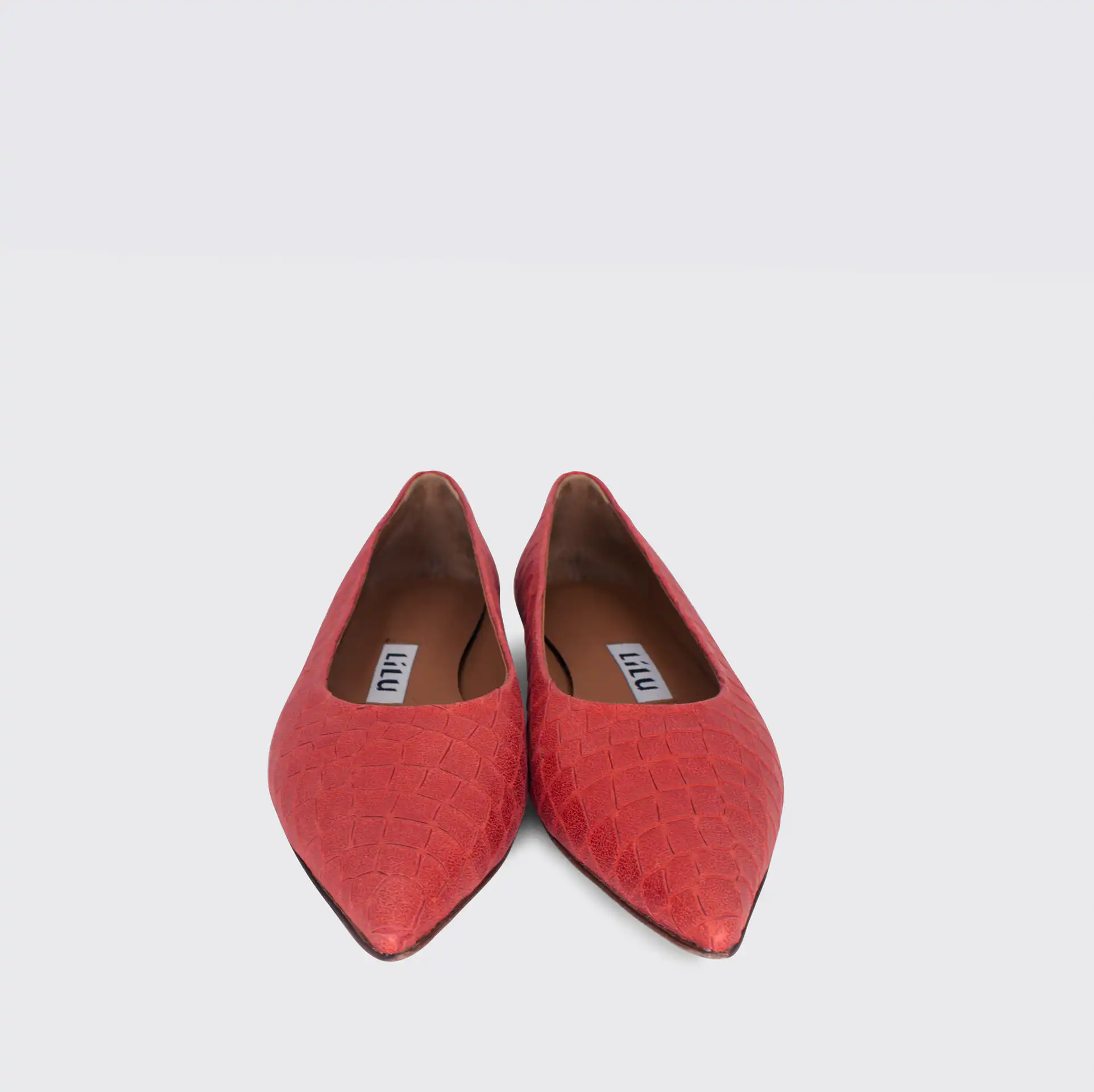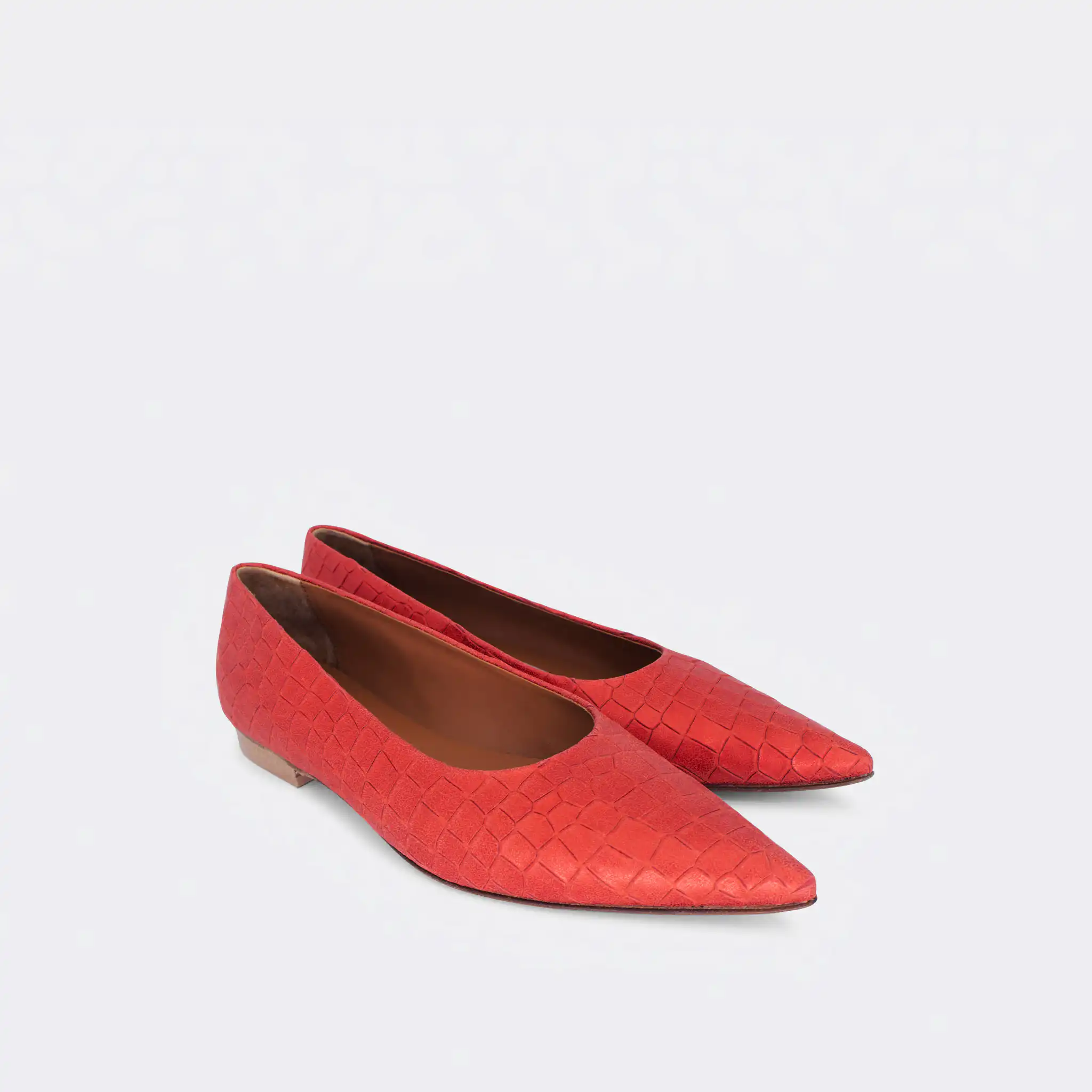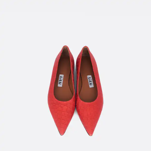 Ravne špicaste cipele za sezonu proleće/leto, na djonu od kože i zbog toga nije poželjno nositi ih kada su lošije vremenske prilike. U pitanju je ručna izrada obuće u malim limitiranim serijama. Izradjujemo ih od crvene kroko kože i leopard velura. Postava je kožna. Za naručivanje u posebnim bojama kontaktirajte nas putem e-mail-a.