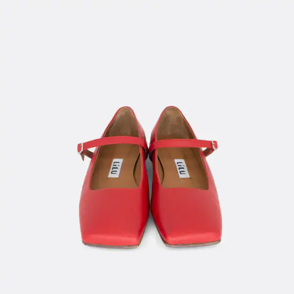 Ravne cipele četvrtastog vrha sa kaišem preko risa, za jesen, na djonu od kože i sa pendžetom. U pitanju je ručna izrada obuće u malim limitiranim serijama. Izradjujemo ih od crne, crvene i pink kože. Postava je kožna. Za naručivanje u posebnim bojama kontaktirajte nas putem e-mail-a.