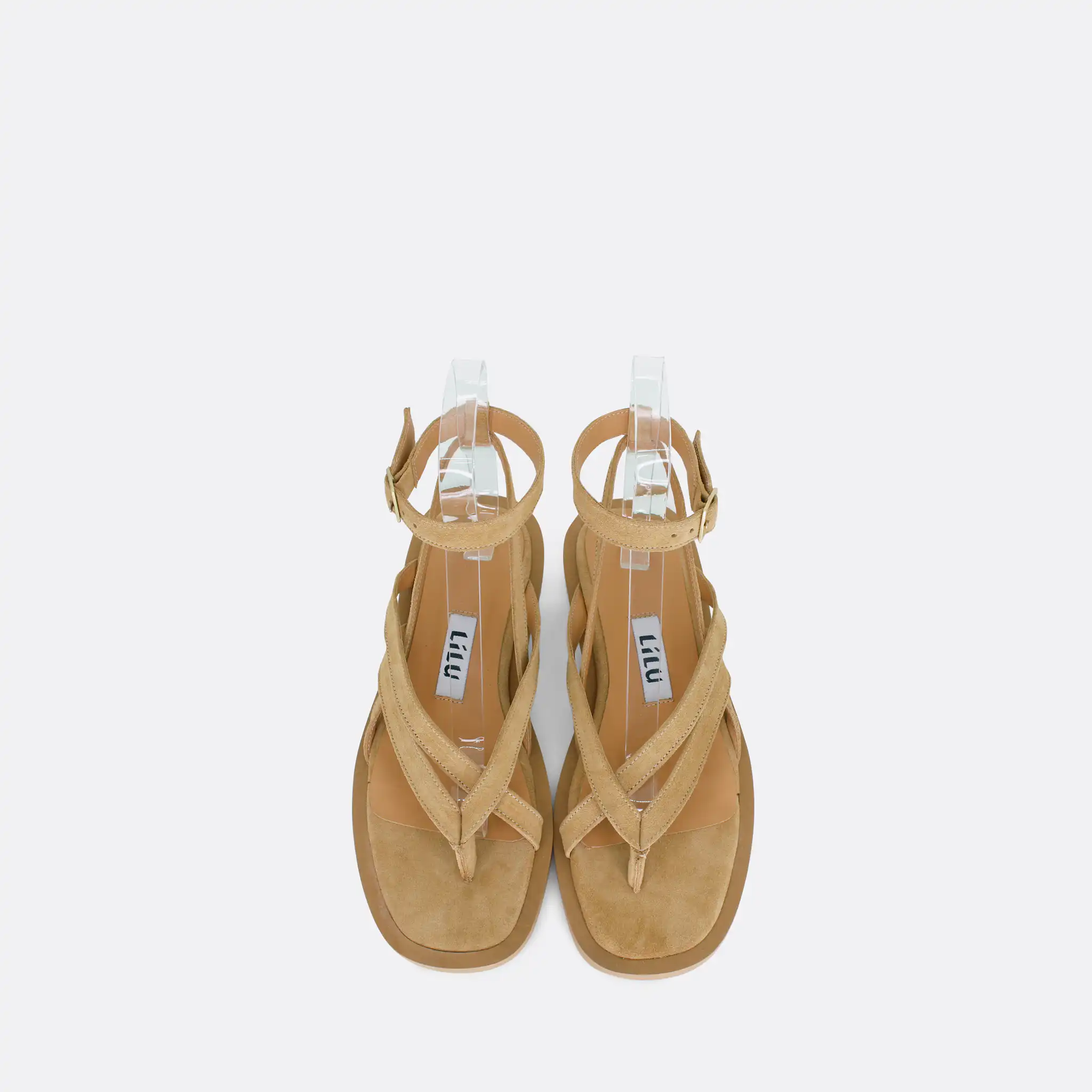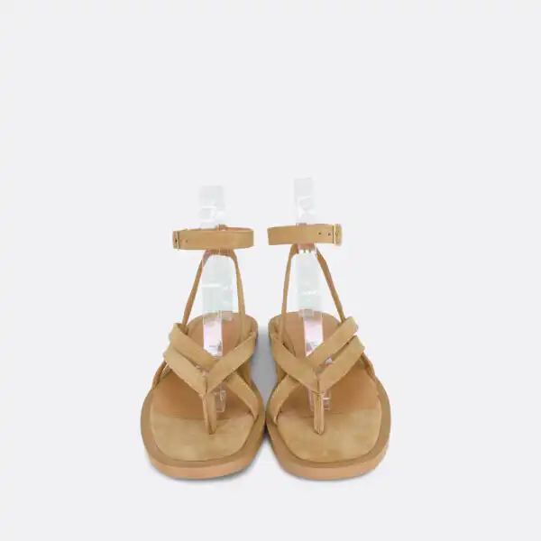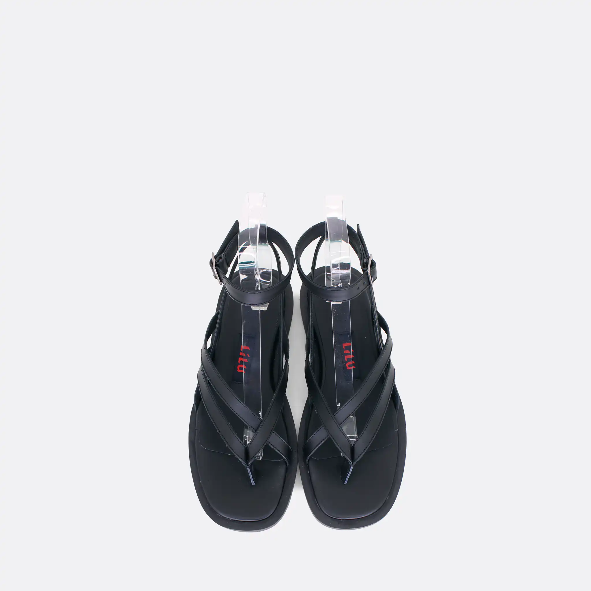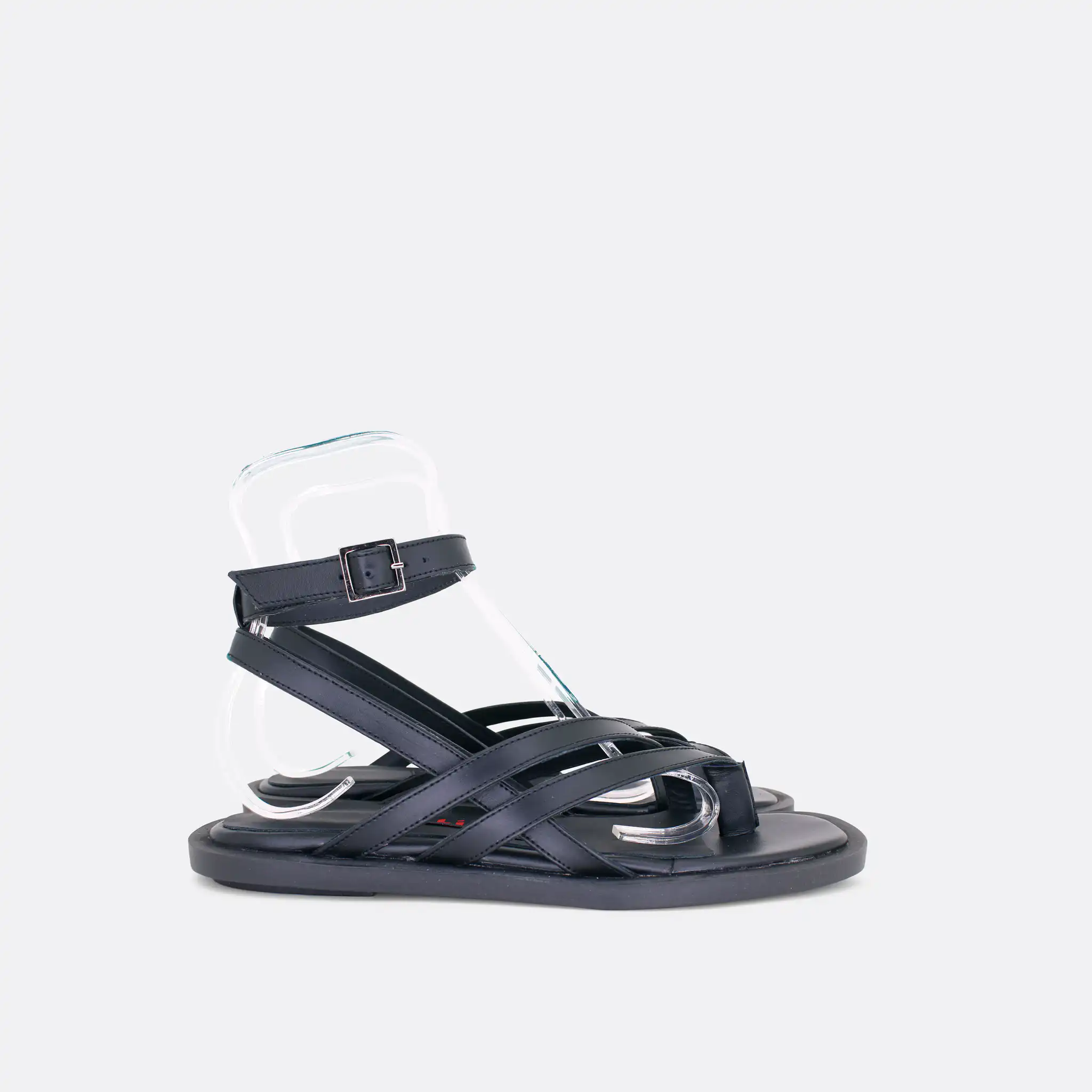 Ravne sandale za leto na djonu od gume i zbog toga je u redu nositi ih i kada su lošije vremenske prilike. Izuzetno mekane i udobne. Postava i lice su od kože. U pitanju je ručna izrada obuće. Izradjujemo ih u crnoj koži i krem kožnom veluru, a za naručivanje u posebnim bojama kontaktirajte nas putem e-mail-a.