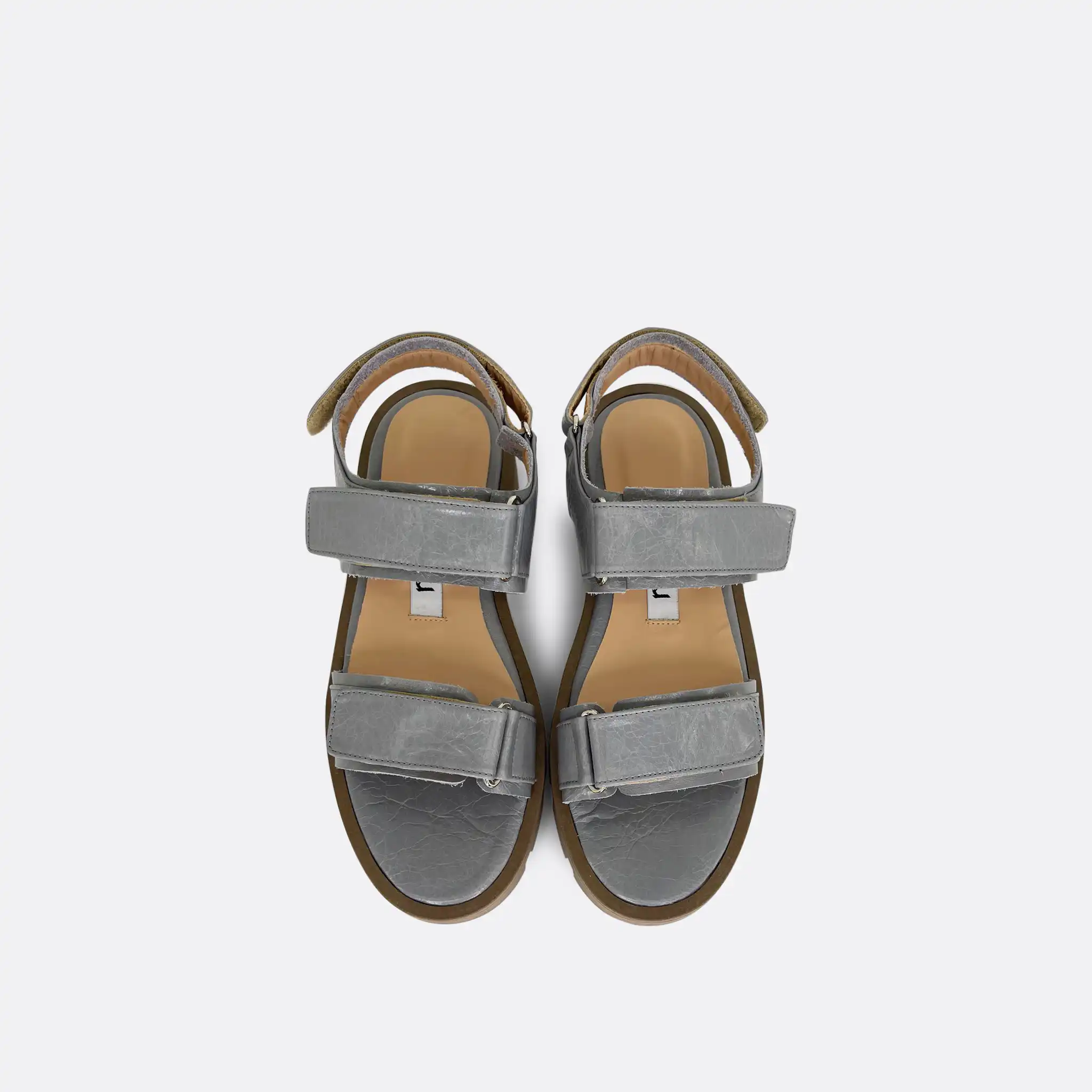 Ravne sandale sa čičkom za leto, na djonu od gume i zbog toga je moguce nositi ih i kada su lošije vremenske prilike. Izuzetno mekane i udobne. Djon može biti crne i braon boje. Postava i lice su od kože. U pitanju je ručna izrada obuće. Izradjujemo ih u mint, puder, koralnoj, crnoj, sivoj i maslinastoj koži, a za naručivanje u posebnim bojama kontaktirajte nas putem e-mail-a.