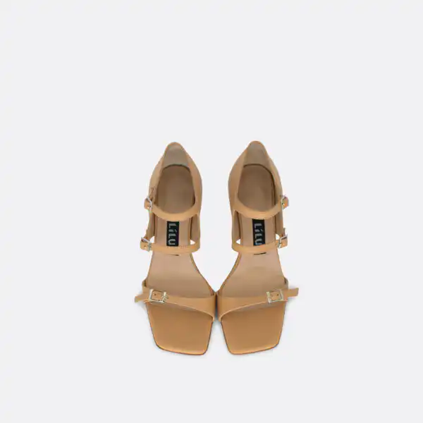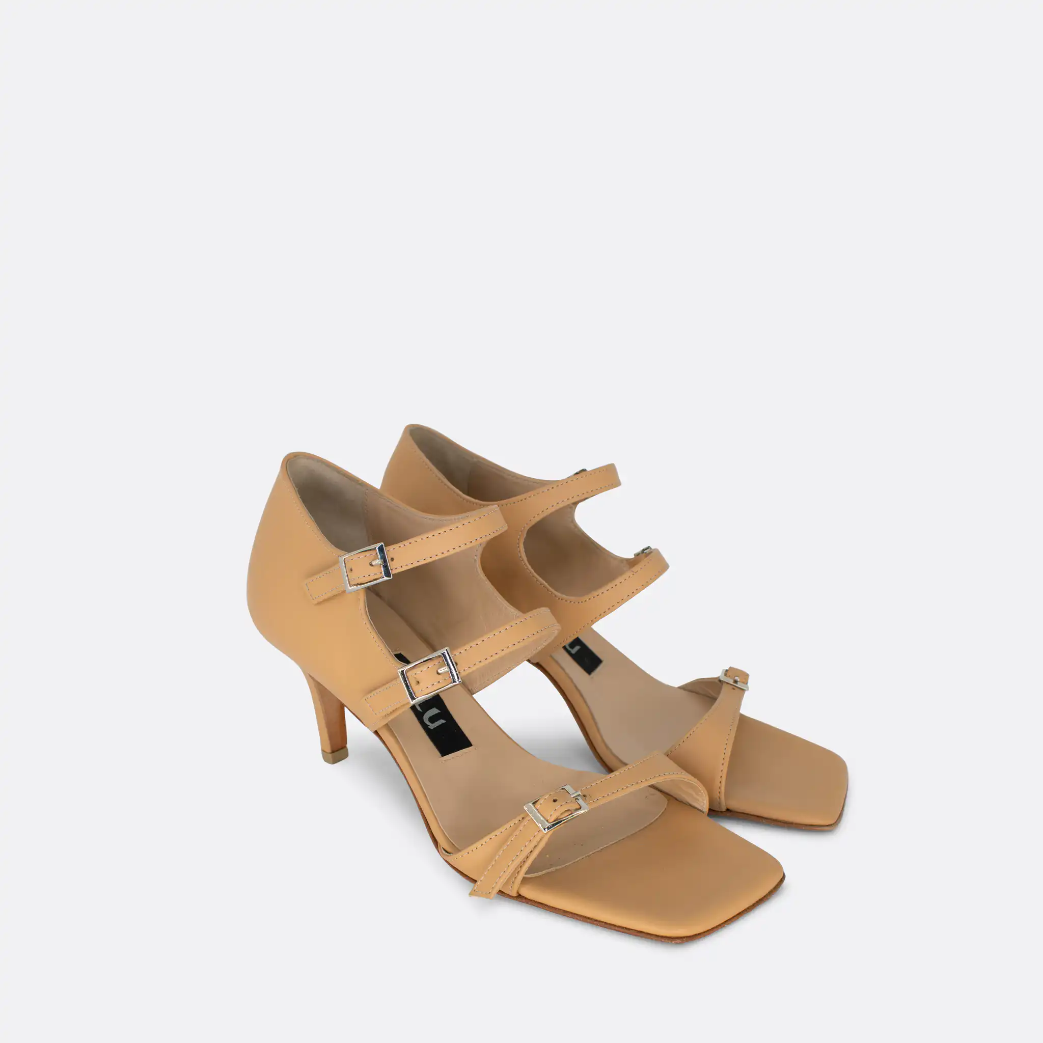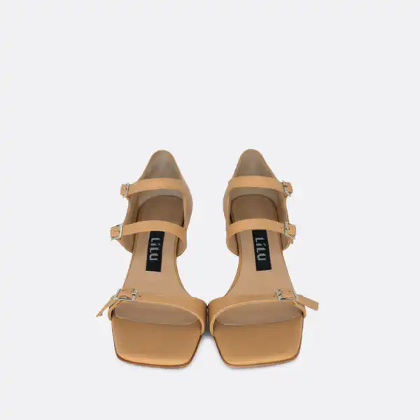 Sandale za leto sa četvrtastim vrhom i 3 kaiša, sa štiklom visine 7 cm, na djonu od kože i zbog toga ih ne treba nositi kada su lošije vremenske prilike. Lice i postava su od kože. U pitanju je ručna izrada obuće. Izradjujemo ih u krem, crnoj, lavanda i senf govedjoj koži. Za narucivanje u posebnim bojama kontaktirajte nas putem e-mail-a.